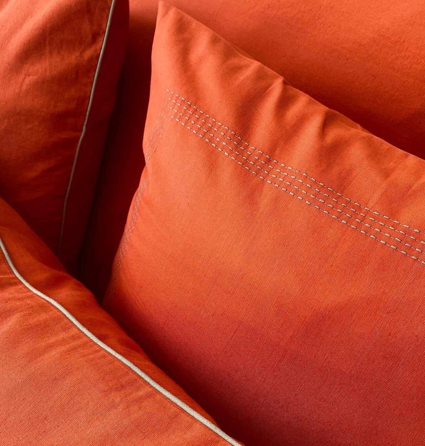 Hand-embroidered cushion coversHand embroidered cushion covers in Khadi - meaning hand spun and hand woven Indian weave.