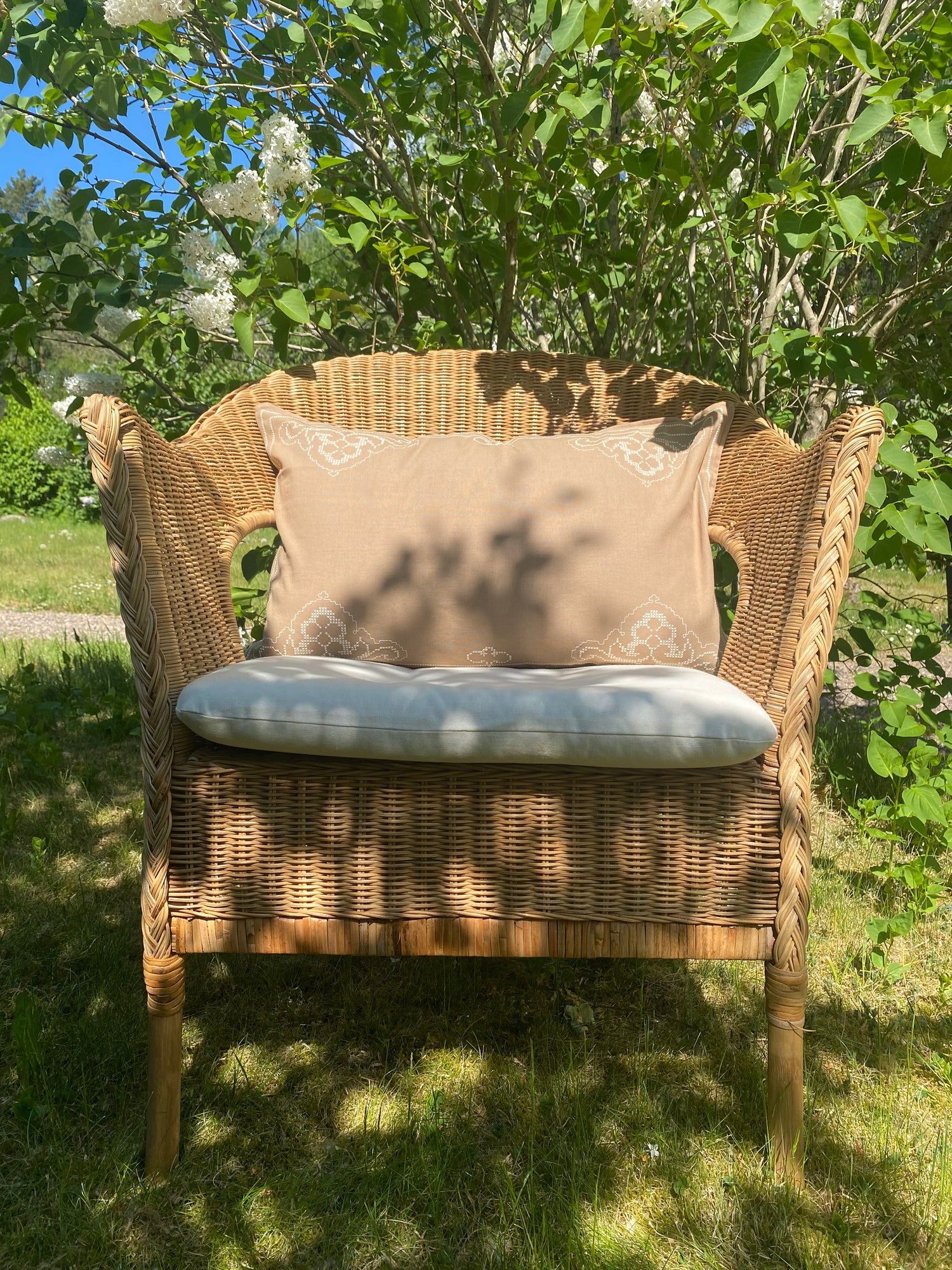 HANNA Hand embroidered cushion coverHANNA is made of hand spun and hand woven fabric called Khadi. The cross stetch mbroidery is made by hand. Measures 65 cm x 65 cm